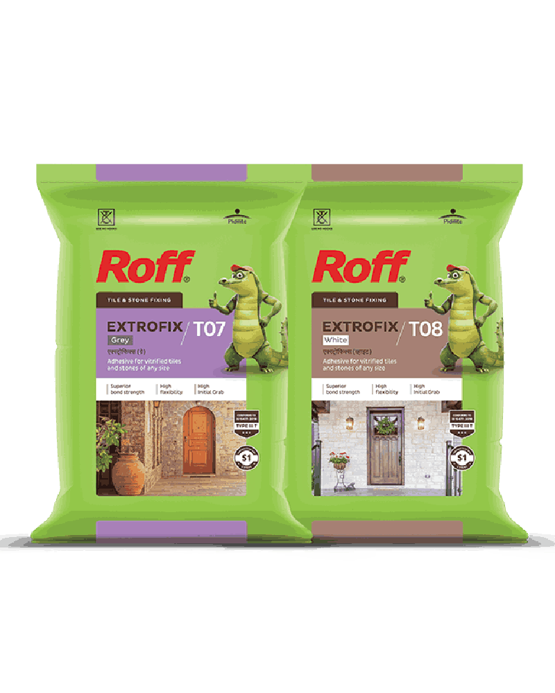 - Material to be Fixed: Roff Extrofix Adhesive can be used on all kinds of ceramic tiles, natural stones, marbles, large format tiles, and low-thickness slabs in external areas.