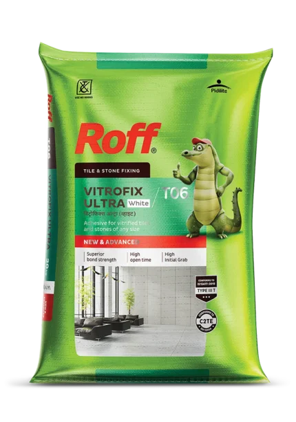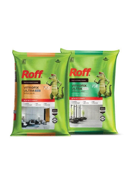 - Roff VitroFix Adhesive is a cement-based tile adhesive for fixing natural stones, tiles, and ceramics. It is not an alternative for waterproofing the tile surface. It is recommended to use under-tile-waterproofing products for making the surface water-resistant. The use of Roff VitroFix Adhesive ensures that the tile is fixed properly on the surface.